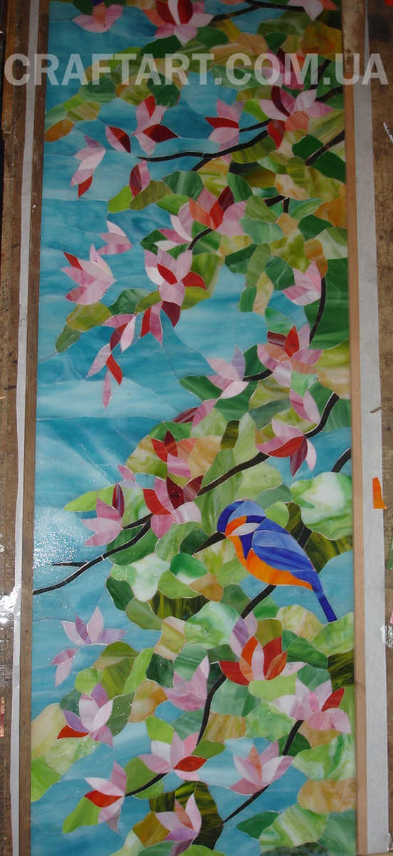 Студія Craftart виготовляє художню мозаїку на замовлення зі смальти, кольорового скла, керамічної плитки та поєднання матеріалів. Досить оригінально та неповторно виглядає мозаїчний фриз у ванній кімнаті або тематичне декорування на стіні в кухні. Намальований та узгоджений ескіз буде втілений у життя, враховуючи всі ваші побажання, стилістику та колористику інтер`єру. Наша мозаїчні картини зі скла несуть ексклюзивний неповторний характер. Вітражна майстерня Крафт Арт працює у всіх стилях та напрямках, від класичних до ультрасучасних. Наші високохудожні мозаїчні вироби стануть неповторною прикрасою вашого дому, додадуть індивідуальності та довершеності.